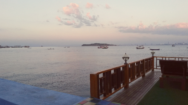 파타야에서 배를 타고 갈수 있는 가까운 섬 꼬란의 카페이다. 시간이 지남에 따라 지금은 모습이 약간 변했을지 모른다.
